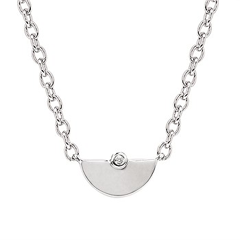Diva Diamonds® Half Moon Pendant In Sterling Silver With .01 Ct. Diamond With 18" Rolo Chain