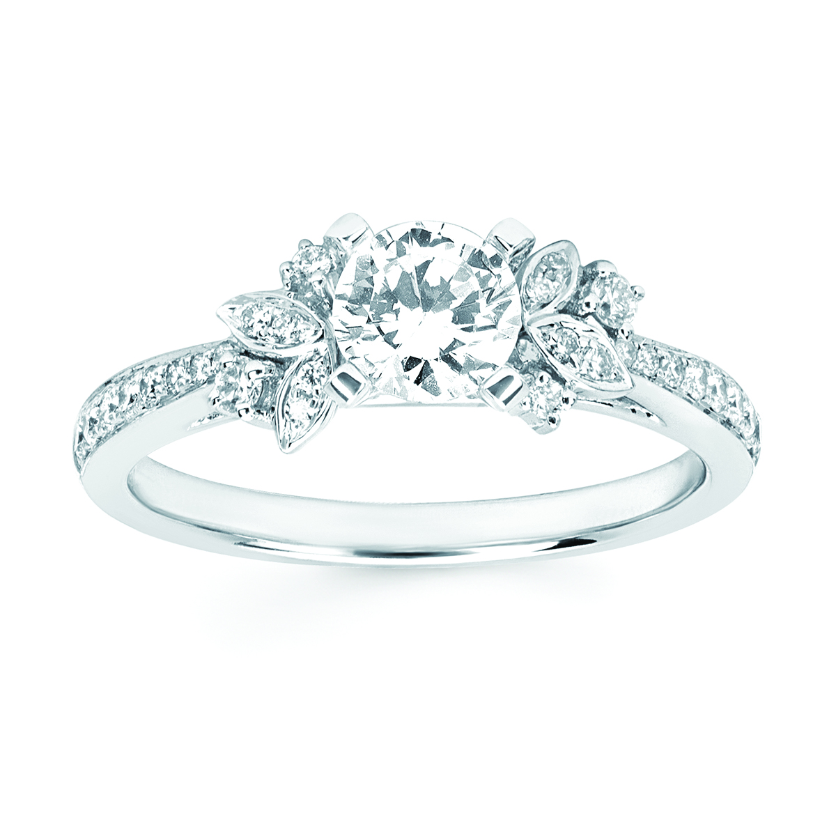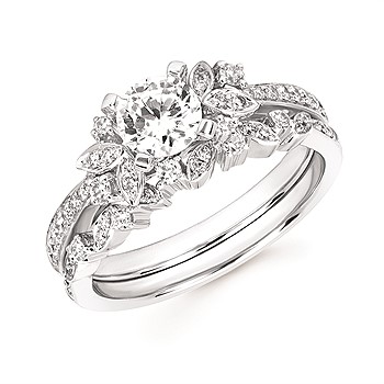 Engagement Ring Forever ElegantĀ® 1/5 Ctw. Diamond Semi Mount shown with 3/4 Ct. Round Center Diamond in 14K Gold
