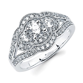 1 Ctw. Framed 3 Stone Diamond Ring In 14K Gold