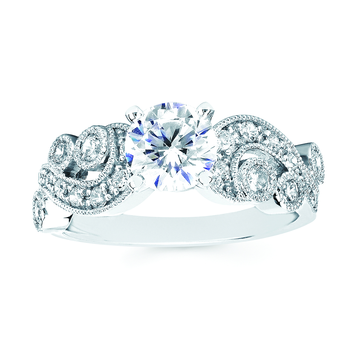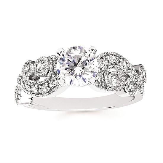 Engagement Ring Vintage Bridal: 3/8 Ctw. Diamond Semi Mount shown with 1 Ct. Round Center Diamond in 14K Gold