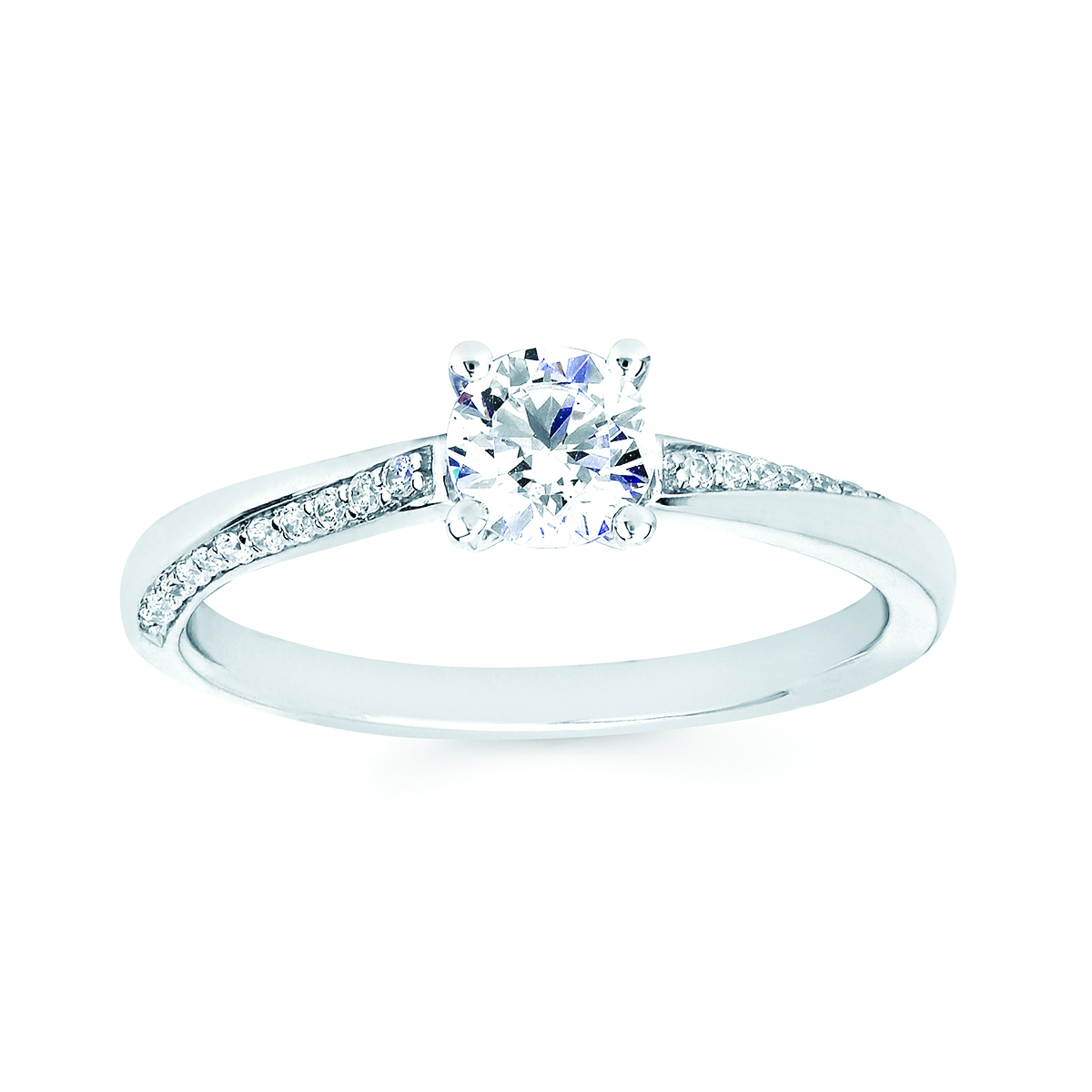 Engagement Ring Modern Bridal: 1/8 Ctw. Diamond Semi Mount shown with a 1/2 Ct. Round Center Diamond in 14K Gold