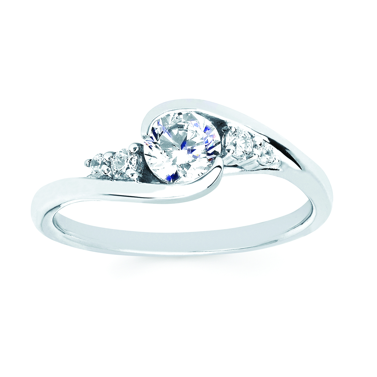 Engagement Ring Modern Bridal: 1/10 Ctw. Diamond Semi Mount shown with a 1/2 Ct. Round Center Diamond in 14K Gold