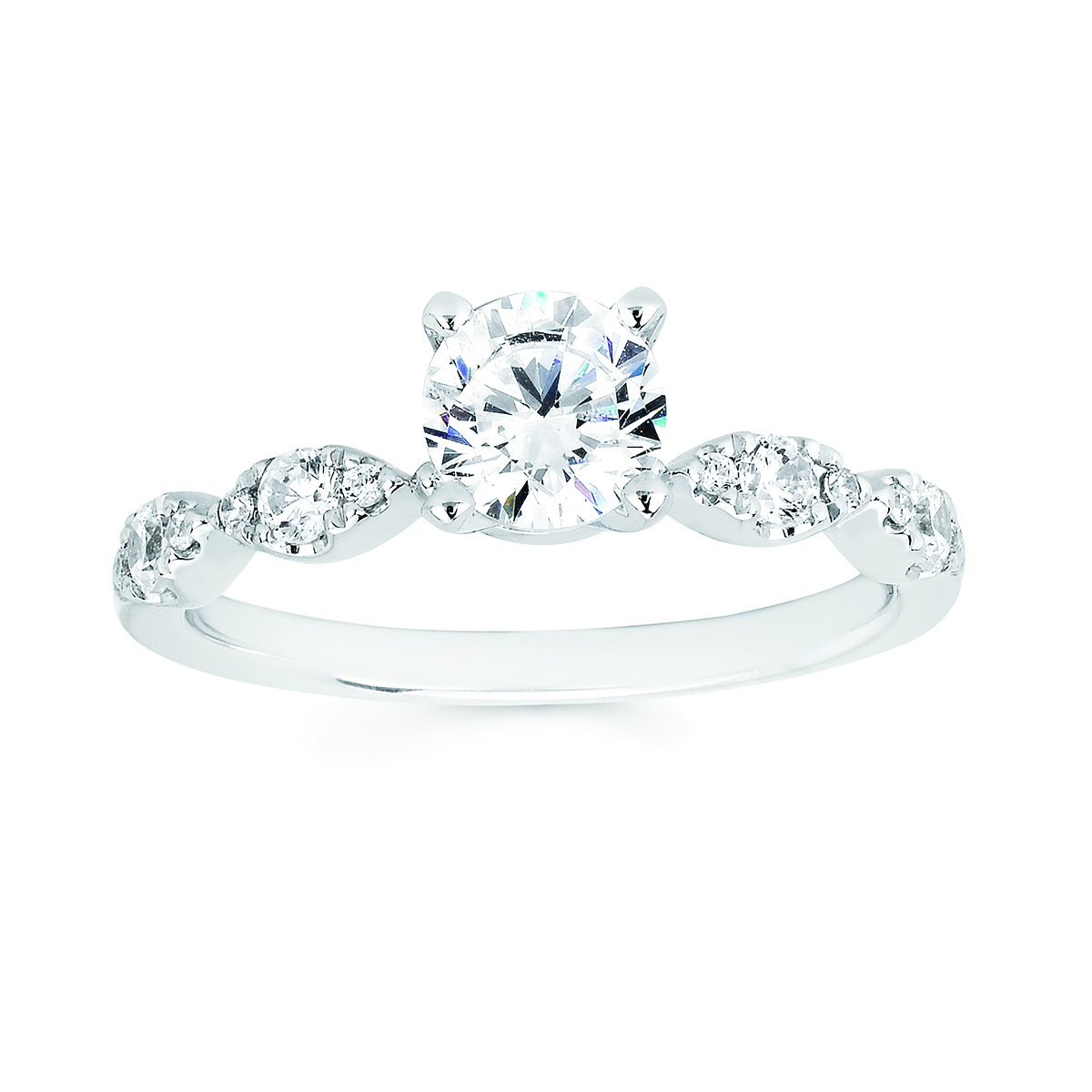 Engagement Ring Modern Bridal: 1/4 Ctw. Diamond Semi Mount shown with a 3/4 Ct. Round Center Diamond in 14K Gold