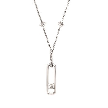 .06 Ctw. Diamond Paperclip Necklace In Sterling Silver. 20" Adjustable Chain.